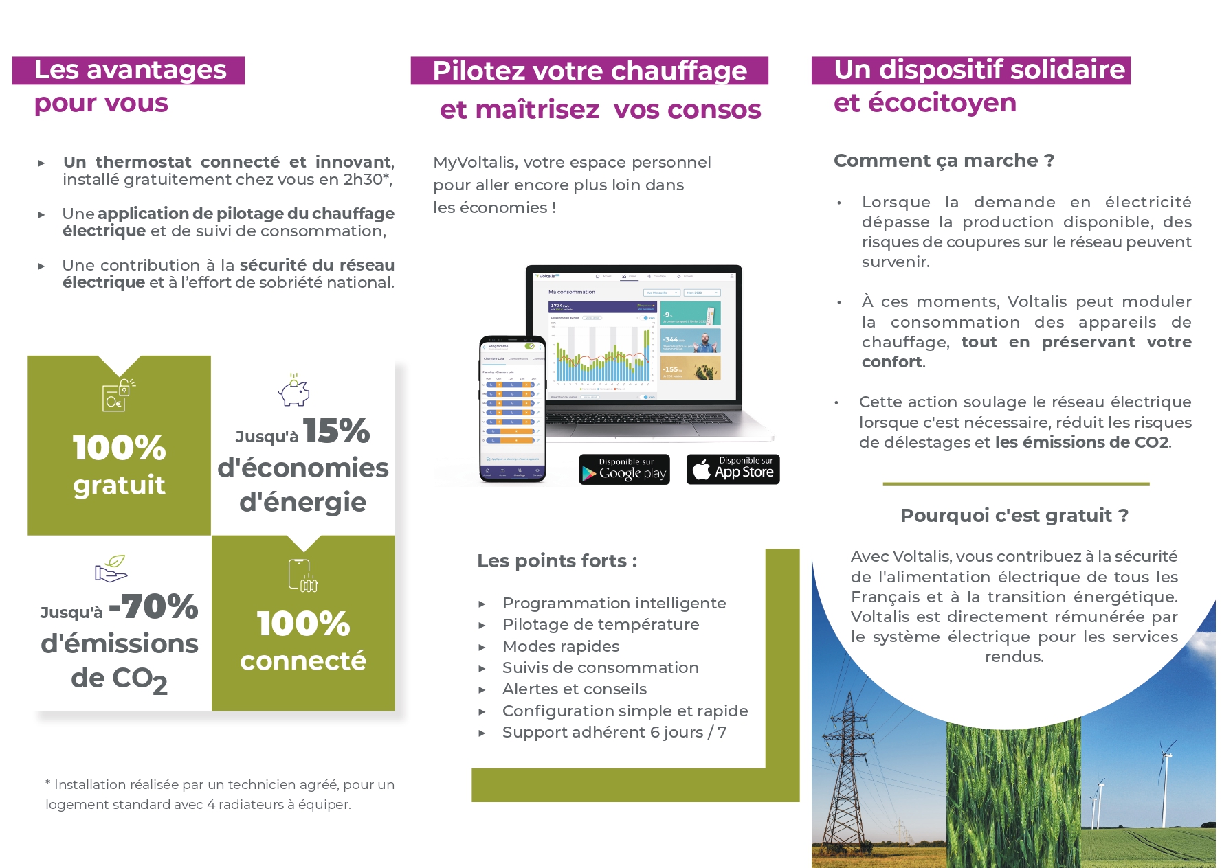 ☎ Pour plus d’informations et profiter d’un rendez-vous d’installation, contactez les conseillers Voltalis par téléphone 02 22 96 95 50 ou par email val2c@voltalis.com