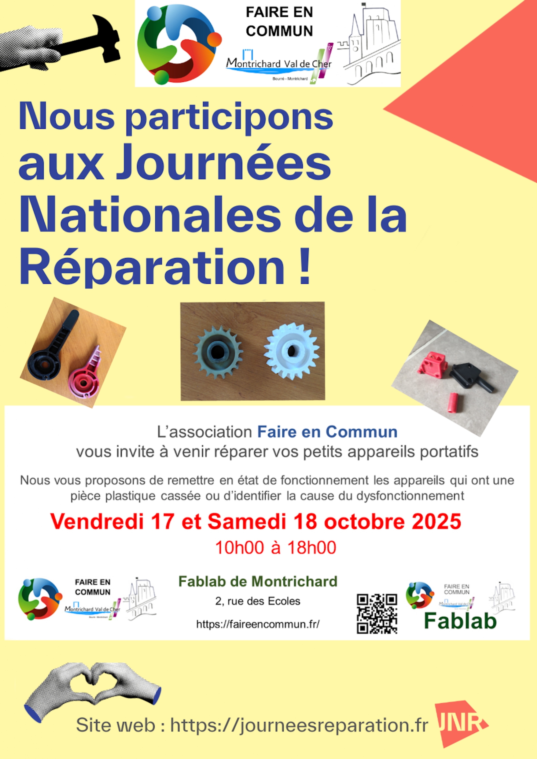 👉 Venez donner une seconde vie à vos objets ! L’association Faire en Commun vous invite à venir réparer vos petits appareils portatifs au Fablab de Montrichard