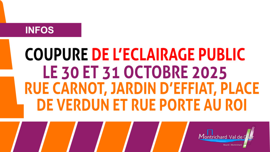 Nous vous informons que l’éclairage public sera coupé Rue Carnot, Rue Porte au Roi, Place de Verdun et Jardin d’Effiat le 30 et 31 octobre, de 19h à 23h30, en raison d’une animation pour Halloween organisée par les Rodeurs du Nord.