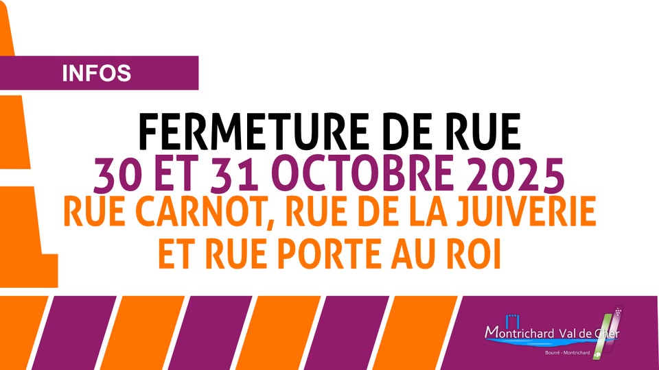 🚧 Dans le cadre d’une animation en centre ville ainsi que pour assurer la sécurité de tous, la circulation de tous les véhicules sera interdite Rue Nationale, Rue du Pont, Rue d’Effiat, Rue porte au roi, Rue de Sully, Rue Carnot, Rue des Ecoles et Rue de la Juiverie le jeudi 10 juillet 2025 de 14h à 23h.